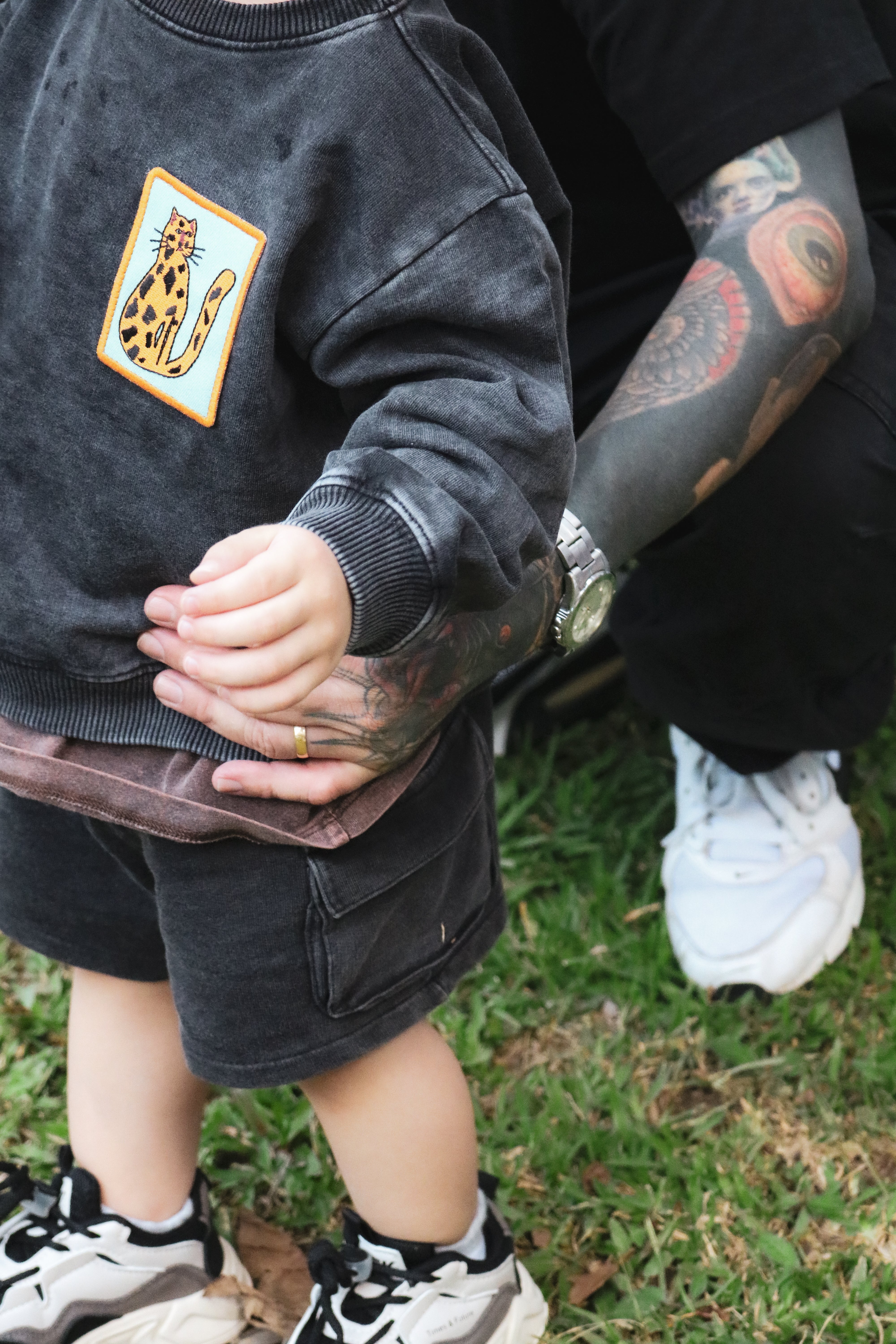 Camiseta Flip + Sweater Tigre + Short Cargo.